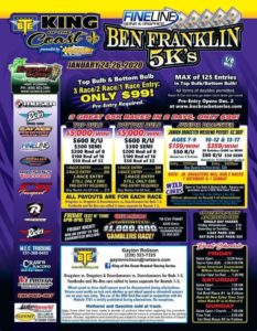Great American Bracket Races is please to announce that Emerald Coast Dragway will host a Great American Guaranteed Million Gambler’s Race at the BTE KOC Series Presented by David McMurtry Racing Engines Ben Franklin 5Ks Jan. 24-26. The Ben Franklin 5Ks will feature three $5,000.00 Races for $99 in both Top Bulb and Bottom Bulb. Jr. Dragsters will also in action. To Register for the $5,0000.00 races visit www.kocbracketseries.com.