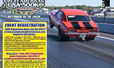 June 1, 2024Registration for the Great American USA $500k at Montgomery International Dragway Opens July 9th at 6pm...