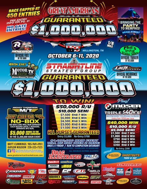 Great American Guaranteed Million Rescheduled To October 6-11 At Memphis International Raceway.