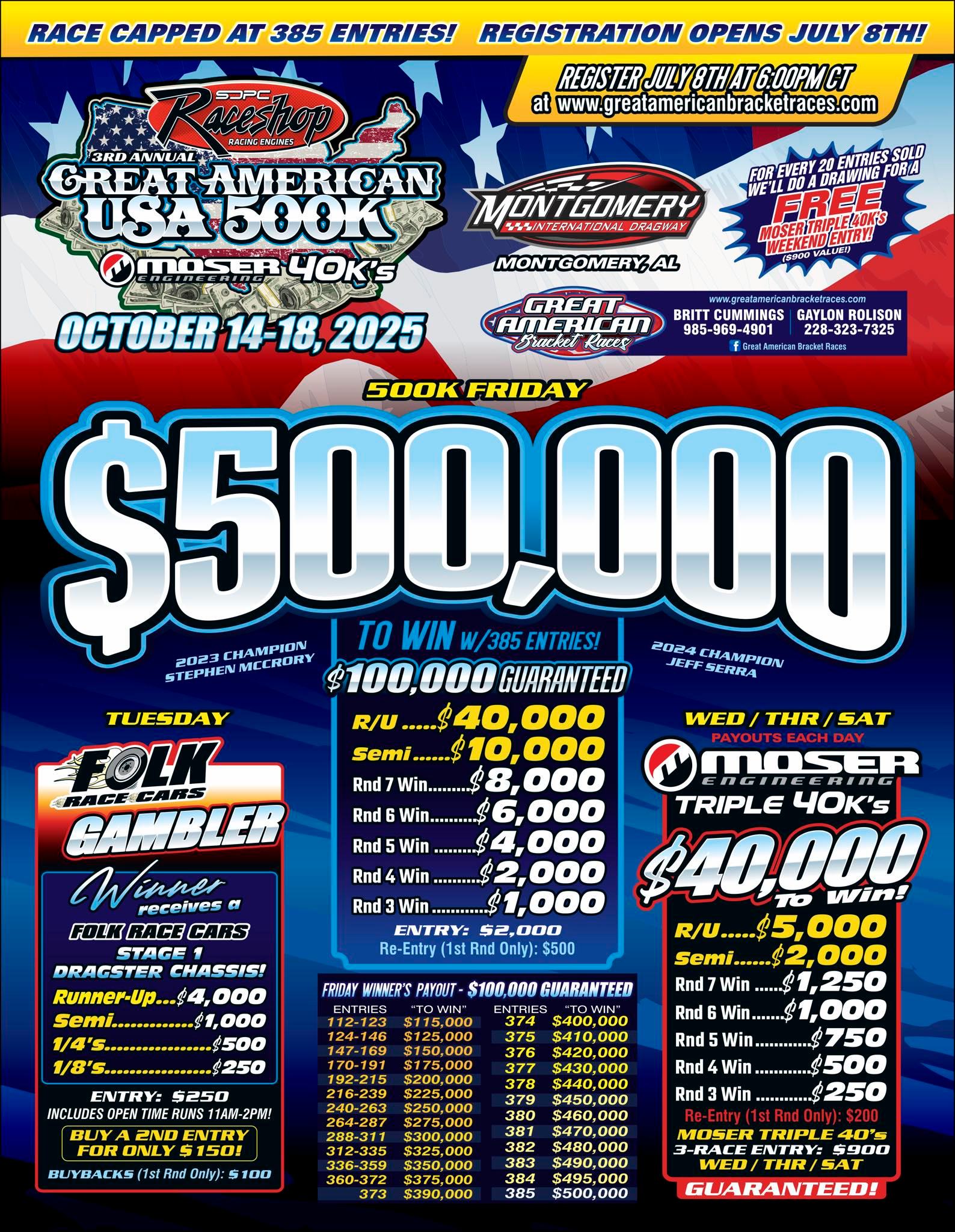 Raffle #1 for the Great American USA $500k presented by SDPC Raceshop and Moser Engineering!